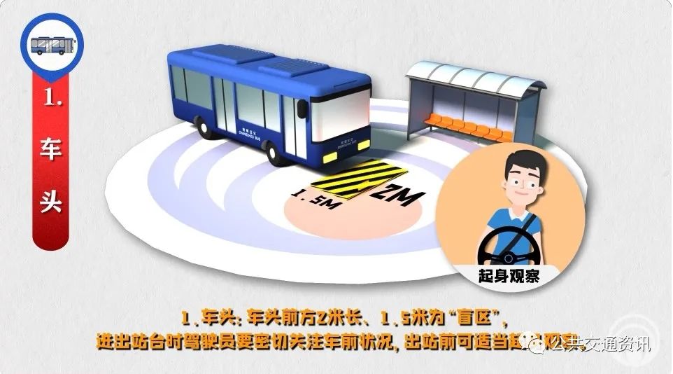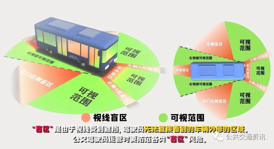 “盲區(qū)”是由于視線受到遮擋,駕駛員無法直接看到的車輛外部的區(qū)域。公交駕駛員運(yùn)營(yíng)時(shí)要防范各類“盲區(qū)”風(fēng)險(xiǎn)。