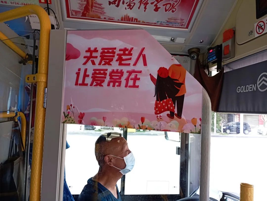 作為公司首條公交“敬老示范線”,1路車輛上的許多細(xì)節(jié),都體現(xiàn)著對(duì)老年人的關(guān)懷。車廂內(nèi),駕駛室門(mén)、座位間靠背都貼有尊老敬老的標(biāo)語(yǔ),宣傳敬老文明思想,營(yíng)造和諧溫馨氛。