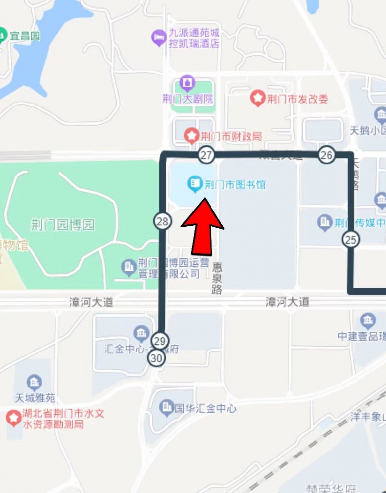 二、乘坐21路(龍泉中學(xué)—漳河旅游碼頭)公交車到漳河大道園博園南門公交站點(diǎn)下車,然后向北大約步行670米。