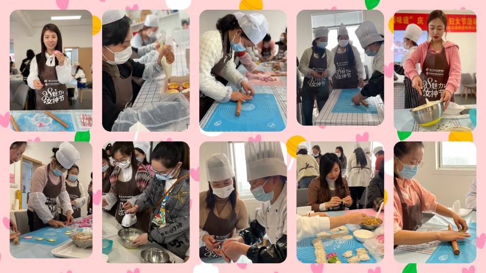 活動(dòng)中,女職工們?cè)趯I(yè)面點(diǎn)老師的指導(dǎo)下包柳葉餃、元寶餃、月牙餃。西式烘焙組按照老師的配方,從制作蛋糕胚到裱花,成功做出了口感綿密的戚風(fēng)蛋糕。每一個(gè)環(huán)節(jié)大家都非常專心和細(xì)心,互相協(xié)作,體驗(yàn)著自己動(dòng)手制作美食的快樂。