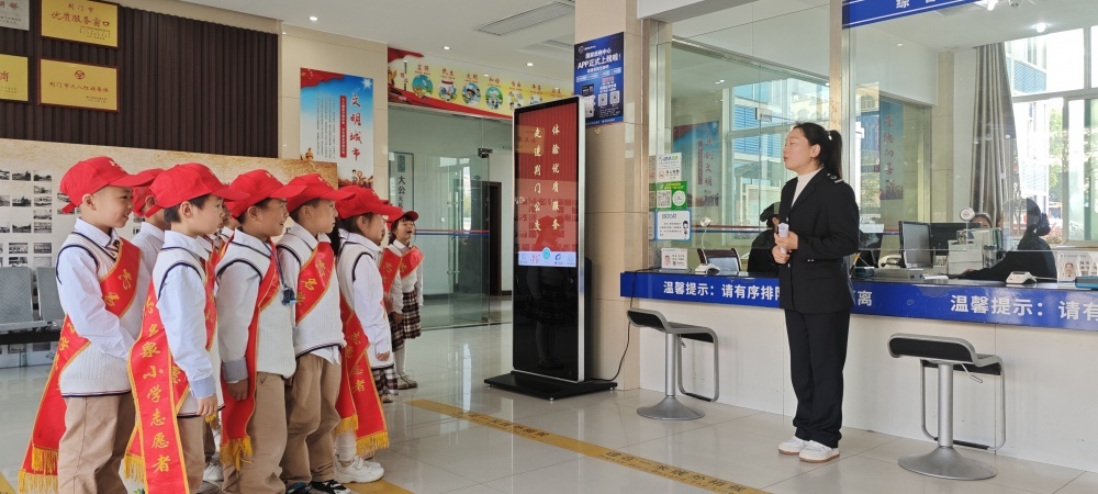 圖/在公交營業(yè)廳,工作人員為同學(xué)們介紹了公交IC卡種類以及“學(xué)生卡”辦理流程,通過實物演示的方式與同學(xué)們互動問答。