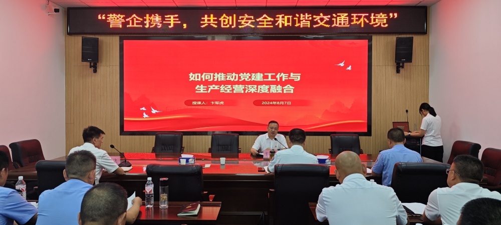 卞軍虎以《如何推動(dòng)黨建工作與生產(chǎn)經(jīng)營深度融合》為題,從“五個(gè)堅(jiān)持,四個(gè)必須”全面分享了集團(tuán)推動(dòng)黨建工作和中心工作深度融合的具體實(shí)踐和有效措施。同時(shí)表明了集團(tuán)黨委在“共創(chuàng)安全和諧交通環(huán)境”工作中愿意主動(dòng)接受公眾和交警監(jiān)督的態(tài)度,希望加強(qiáng)與市公安局交通警察支隊(duì)掇刀大隊(duì)黨支部聯(lián)學(xué)聯(lián)做形式,在下一步集團(tuán)“黨員示范線”黨建品牌創(chuàng)建中給予指導(dǎo)和支持。