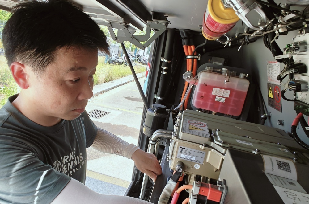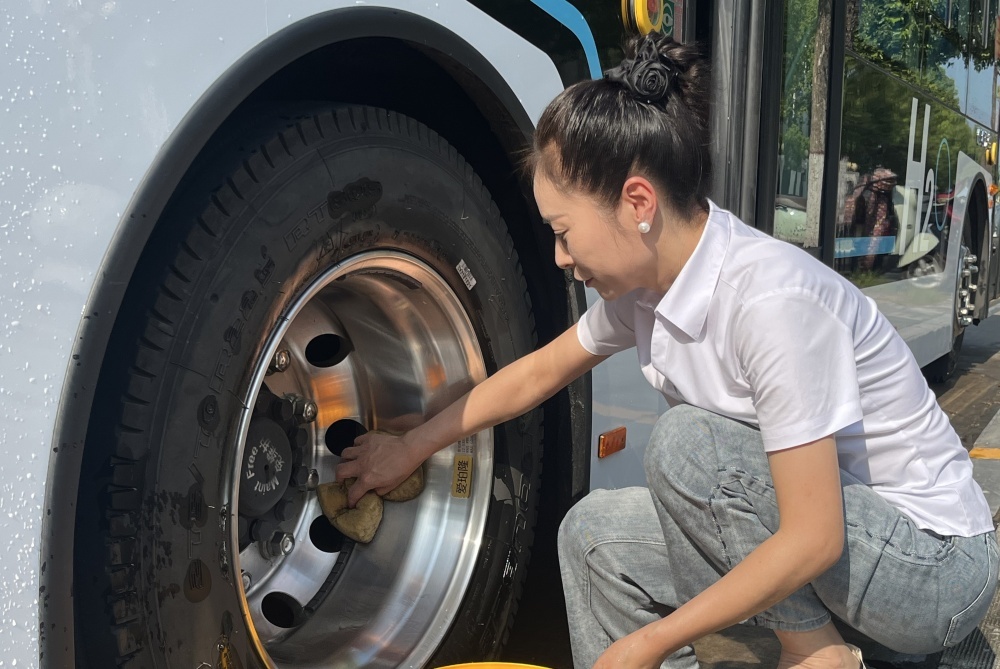 大太陽底下,他仔細檢查每一處,就為了保障公交車能順順當(dāng)當(dāng)跑。
