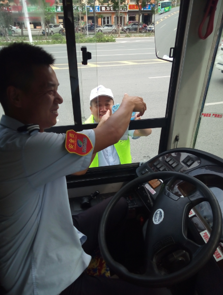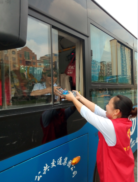 “目前還有小部分線路的公交車是沒有空調(diào)的,就算夏天再熱也得堅持,現(xiàn)在天這么熱,一天下來衣服都不知道要濕多少次。今天有他們給我們送來的礦泉水,讓我們司機在這夏日里體會到了一絲清涼,真的很感謝他們。有了他們的支持和理解,我們更要做好本職工作?!惫患瘓F工作人員說。