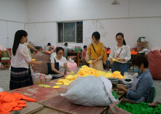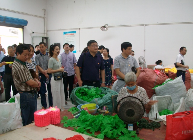 當日9時,在荊門市圓夢愛心幫扶會會議室中舉行了升旗儀式,黨員們重溫入黨誓詞,認真學習了習近平總書記視察湖北重要講話精神。隨后孟麗華介紹了市圓夢殘疾人庇護工場的相關情況,2014年,在孟麗華的牽頭下,籌建了一個助殘扶弱的公益組織,取名為荊門市圓夢愛心幫扶會,創(chuàng)辦了一個專門為殘疾人服務的庇護工場。為了更深入的了解市圓夢殘疾人庇護工場,黨員們在解說員的陪同下,參觀殘疾人員工的工作環(huán)境,還一起與員工們編織手工花朵,為工場打掃衛(wèi)生,清除雜草,給這些殘疾人員工一個更好的工作環(huán)境。