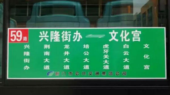 59路起于興隆街辦,止于荊門工人文化宮,全線共行駛興隆街辦、荊南大道、龍井大道、培公大道、虎牙關(guān)大道、白云大道、文化宮等主要線、點(diǎn),覆蓋高新區(qū)東片區(qū)的國昊文化、華工科技等主要企業(yè),連接九派通眾創(chuàng)園、區(qū)政府、十里牌、天鵝湖、中心客運(yùn)站等。早班為6:36分發(fā)班,晚上18點(diǎn)收班。計劃投入公交車20輛,首批投入6輛試運(yùn)行。至1月20日后正式運(yùn)行。