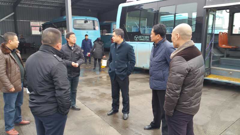 為應(yīng)對冰雪惡劣天氣,確保線路營運車輛安全行車。2016年11月23日下午,荊門公共交通集團公司常務(wù)副總經(jīng)理張國軍、常委委員王群華帶領(lǐng)營運安全部對三個公交營運公司防凍防滑物資準(zhǔn)備及當(dāng)天車輛運行情況進行巡查。